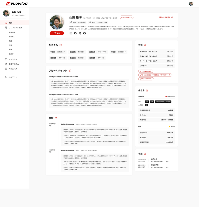 エンジニアやデザイナーの副業プラットフォーム。充実したデータベースや、チャット機能まで提供します。