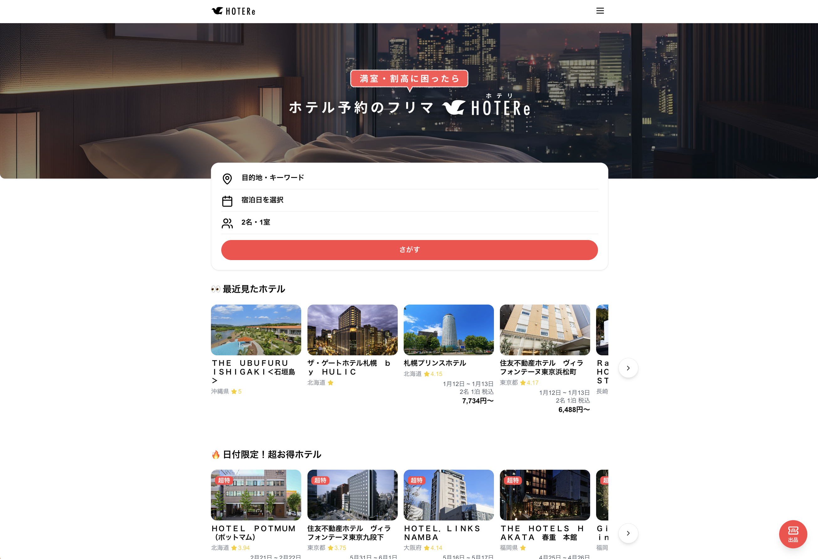 ホテルの宿泊権利のCtoCサービス。